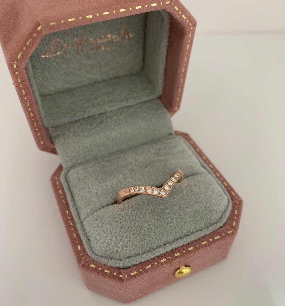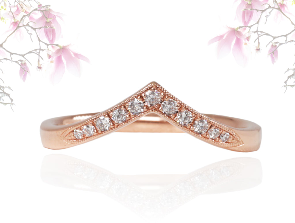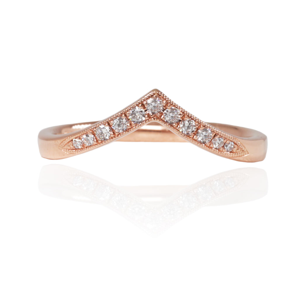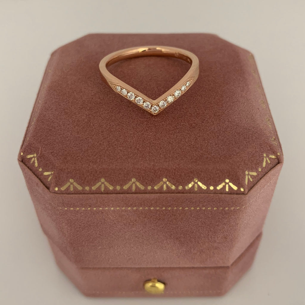 Delicate, elegant, exquisite. A stunning handmade 14K Rose Gold Diamond and Milgrain Ring