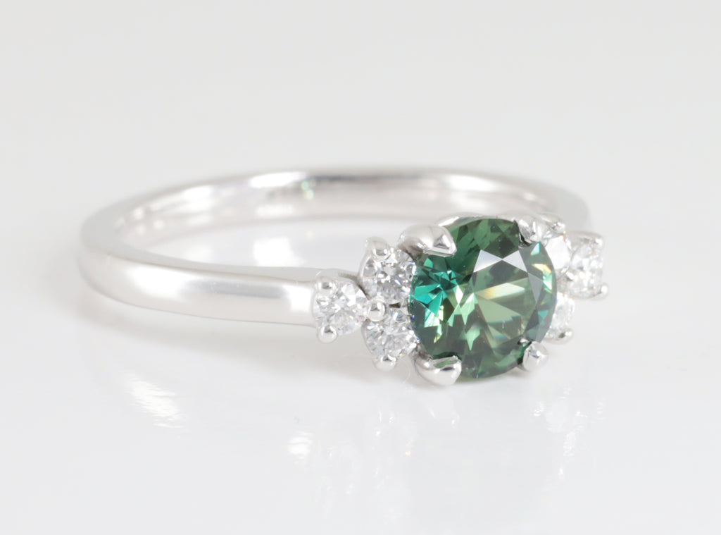 Australian Green Sapphire and Diamond Ring in Platinum