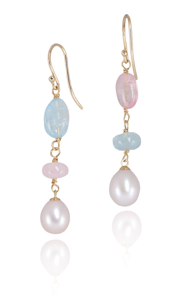 Aquamarine, Morganite, Freshwater Pearl Earrings