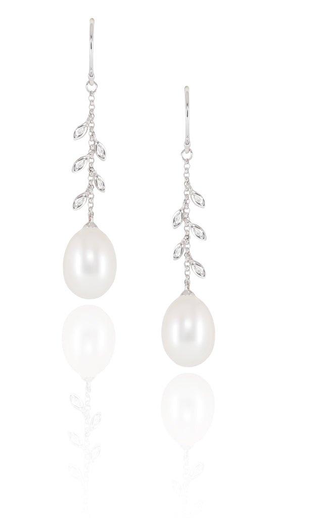 Freshwater Pearl and Diamond Petal Drops in White Gold