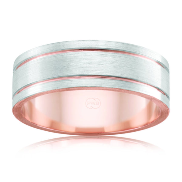 Mens Rose and White Gold Ring Overlay with Satin finish
